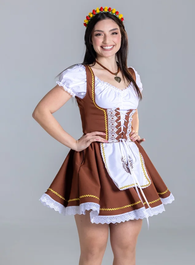 O traje Leni, inspirado no modelo Sexy Frida, é a escolha perfeita para quem quer ousar com elegância nas festas típicas! Com uma proposta mais sensual e moderna, ele é classificado como fantasia — e por isso, não dá direito à meia-entrada na Oktoberfest. ⚠️