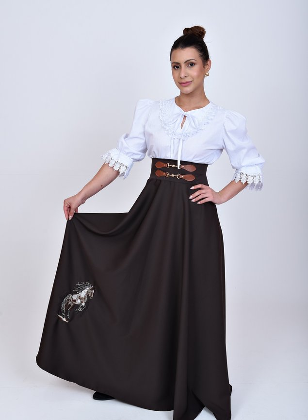 🤎✨ Saia Prenda Alfaiataria Premium – Bordado de Cavalo Luxuoso ✨🤎