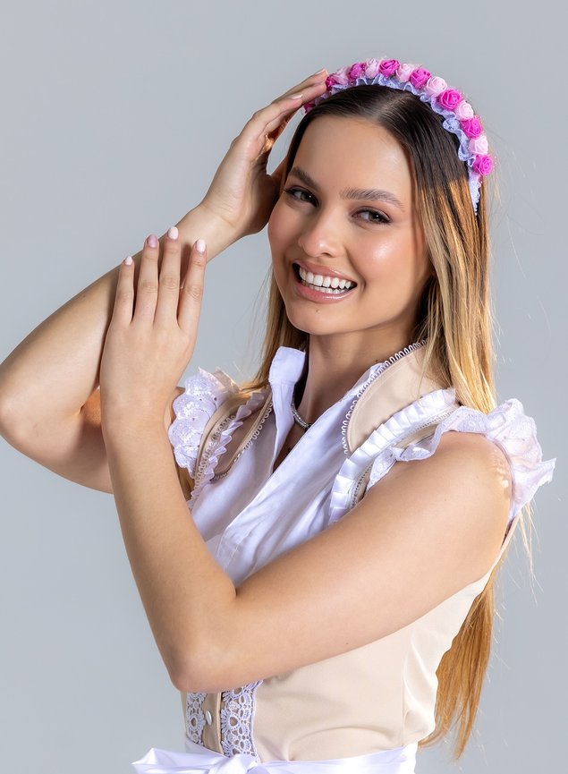 - Confeccionada com flores delicadas em EVA, a tiara conta com detalhes em renda na base, que proporcionam um acabamento elegante e cheio de charme.